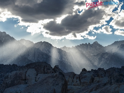 Puzzle Promienie Słońca, Góry, Szczyty, Chmury