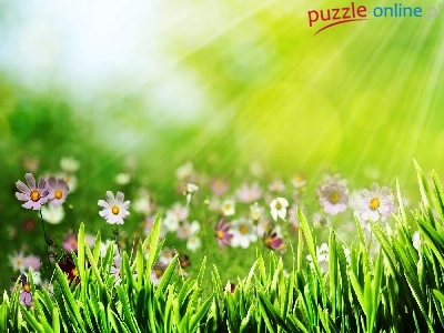 Puzzle Promienie, Kwiatki, Trawa, Słońca