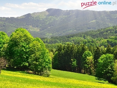 Puzzle Promienie, Lasy, Wzgórza, Słońca