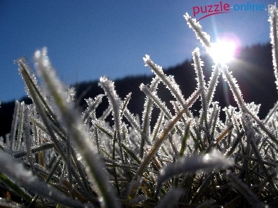 Puzzle Pronienie, Trawa, Szadź, Słońca
