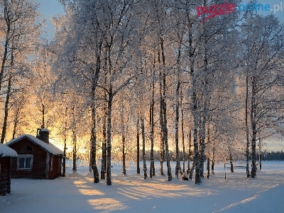Przebijające, Drzewa, Zima, Pola, Domy, Światło