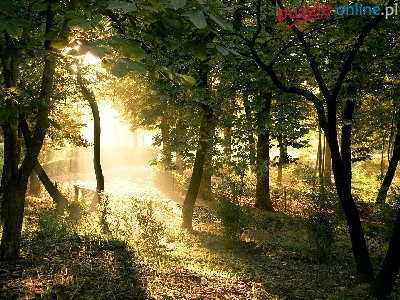 Puzzle Przebijające, Las, Drzewa, Słońce