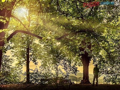 Światło, Drzewa, Park, Przebijające, Mężczyzna