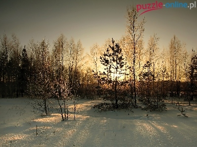 Puzzle Przebijające, Zima, Drzewa, Światło