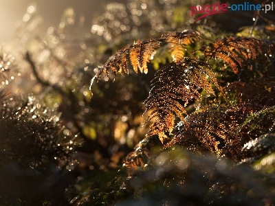 Puzzle Przebijające światło, Paproć, Krople, Jesień