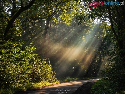 Droga, Drzewa, Las, Przebijające światło, Krzewy
