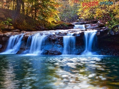 Przebijające, Jesień, Wodospad, Las, Światło
