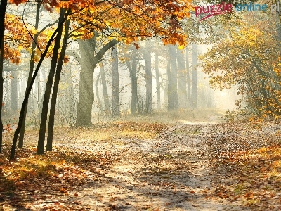 Przebijające, Droga, Jesień, Park, Liście, Światło