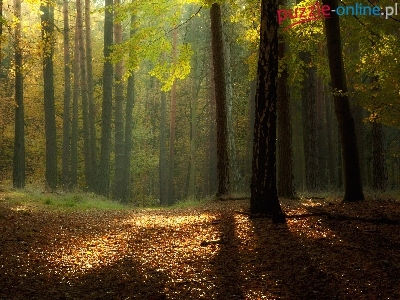 Przebijające, Jesień, Las, Liście, Światło