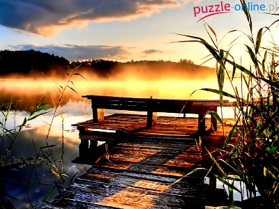 Puzzle Przebijające Światło, Jezioro, Mgła, Pomost