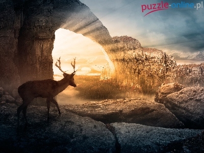 Przebijające, Góry, Jeleń, Grafika, Skały, Światło