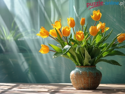 Kwiaty, Żółte, Tulipany, Przebijające światło, Wazon