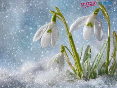 Puzzle Grafika AI, Śnieg, Przebiśniegi