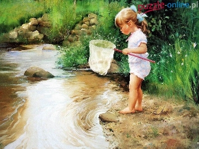 Puzzle Przy, Obraz, Dziewczynka, Rzece