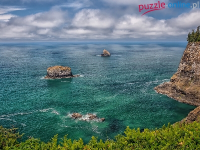 Oregon, Stany Zjednoczone, Przylądek Meares, Morze, Skały, Park Stanowy Cape Meares, Wybrzeże, Roślinność