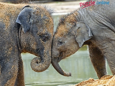 Puzzle Słoniątka, Słonie, Dwa, Przytulone