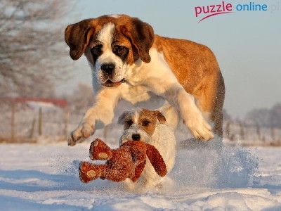 Puzzle Śnieg, Psiaki, Zabawka