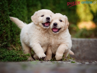 Puzzle Psy, Szczeniaki, Dwa, Golden Retrievery