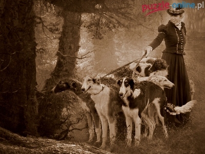 Psy, Fotografia, Rosyjskie, Stara, Kobieta, Charty