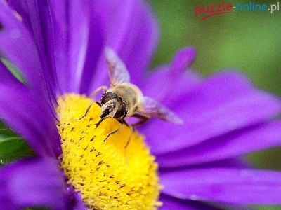 Puzzle Pszczoła, Fioletowy, Kwiat, Makro