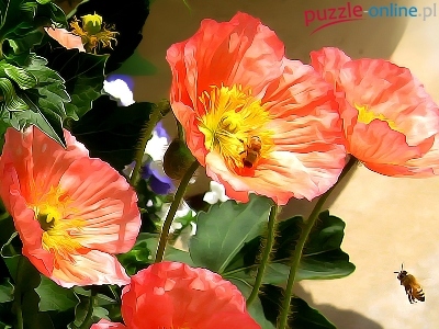 Pszczoły, Kwiaty, Maki, 2D