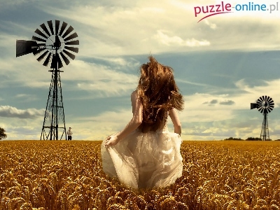 Puzzle Pszenica, Dziewczyna, Włosy, Wiatrak