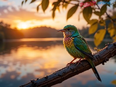 Puzzle Konar, Zielono-pomarańczowy, Ptak, Grafika AI