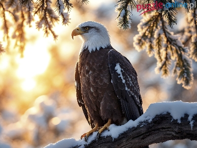 Śnieg, Bielik amerykański, Ptak, Konar, Światło, Gałązki