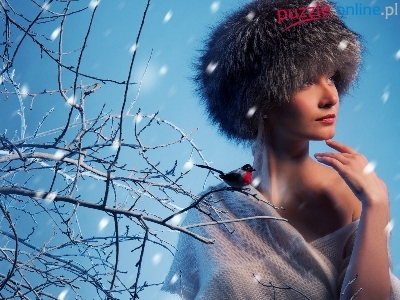 Puzzle Ptak, Kobieta, Czapka, Zima