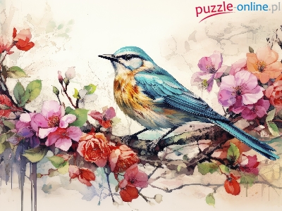 Kwiaty, Kolorowy, Grafika, Ptak, Kolorowe, Gałązka