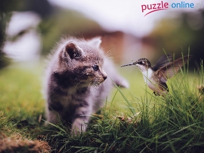 Puzzle Ptak, Kot, Kotek, Koliber