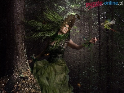 Puzzle Ptak, Dziewczyna, Las, Motyl