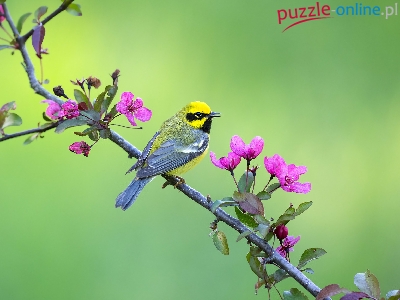 Puzzle Kwiaty, Ptak, Lasówka niebieskoskrzydła, Gałązka
