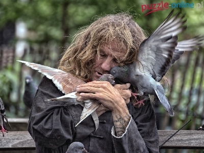 Puzzle Ptaki, Mężczyzna, Bezdomny, Gołębie