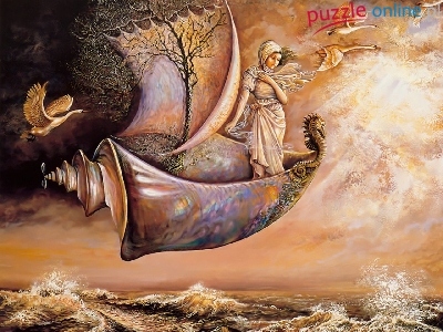 Ptaki, Fantastyka, Kobieta, Muszla, Reprodukcja
