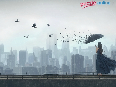 Puzzle Ptaki, Kobieta, Parasol, Fantasy