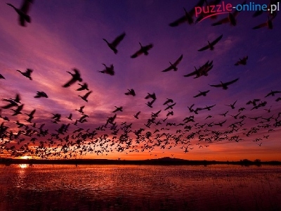 Puzzle Zachód, Ptaki, Słońca