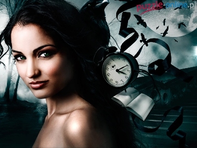 Puzzle Ptaki, Dziewczyna, Zegarek, Planeta