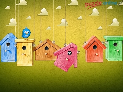 Puzzle Ptaszek, Kolory, Karmniki, Chmury