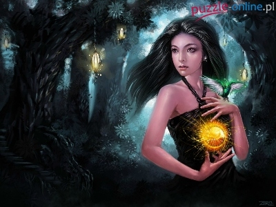 Puzzle Ptaszek, Dziewczyna, Las, Światło