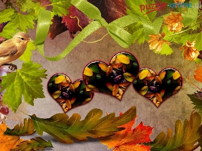 Puzzle Ptaszek, Jesienne, Liście, Serca