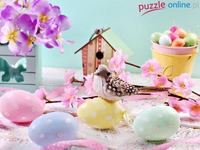 Ptaszek, Dekoracja, Wielkanoc, Pisanki, Kwiaty