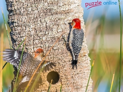 Puzzle Dzięcioły, Ptaszki, Drzewo