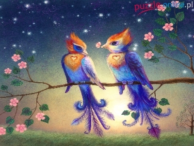 Puzzle Ptaszki, Dwa, Kolorowe, Miłość