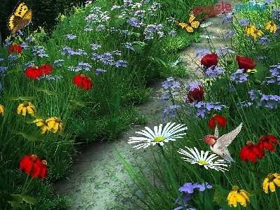 Kolorowe, Ptaszki, Rzeka, Kwiaty, Ścieżka, Polne, Motyle