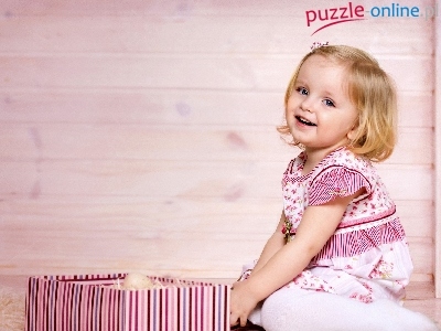 Puzzle Pudełko, Uśmiechnięta, Dziewczynka, Prezent