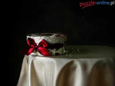 Pudełko, Biały, Wstążka, Stół, Obrus, Prezent