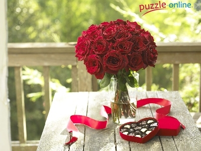 Puzzle Pudełko, Bukiet, Róż, Czekoladek
