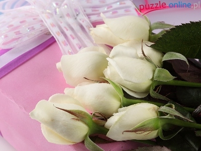Puzzle Pudełko, Białe, Róże, Wstążki