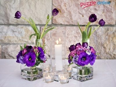 Puzzle Kwiaty, Purpurowe, Åšwiece